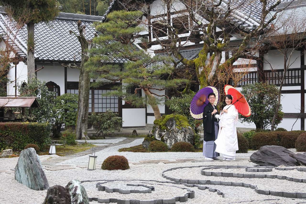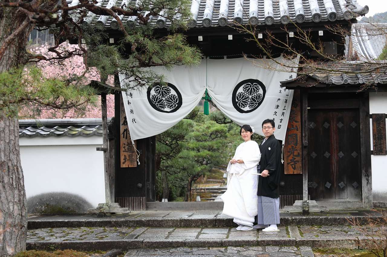 プラン内容 衣裳:新郎新婦各1着(フリーチョイス)・ヘアメイク・着付け・撮影・全撮影データ・10Pアルバム・送迎 + 往路・平安神宮界隈での撮影
