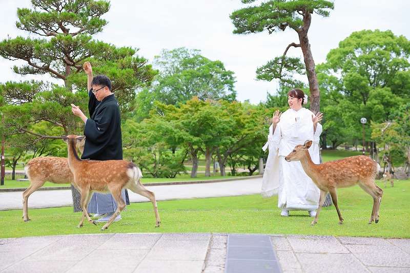 甍周辺・奈良公園の撮影時間は2時間です。鹿せんべい代金は別途清算