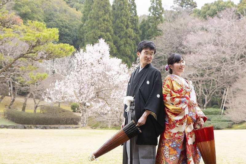 プラン内容 :新郎新婦の衣裳各一着、ヘアメイク、着付、送迎、撮影+全撮影データ、10Pアルバム